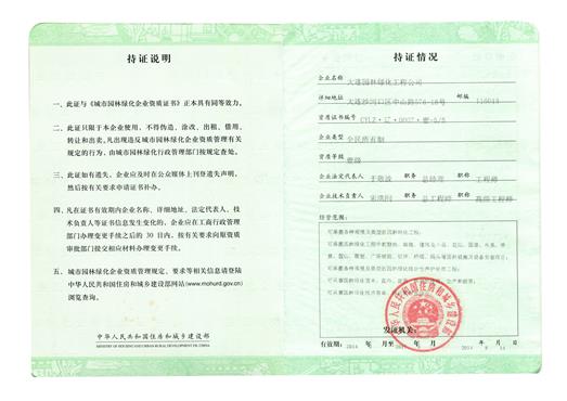 大连园林绿化工程有限公司 - 工程案例 - 资质证书副本